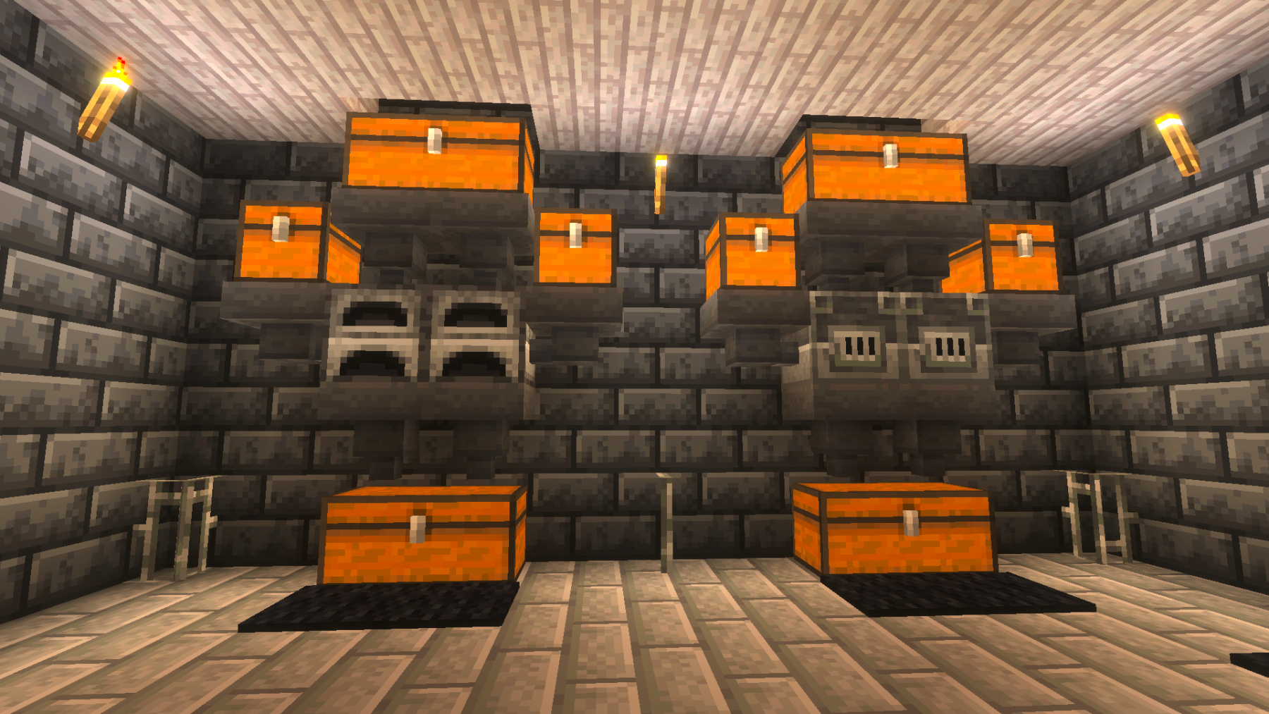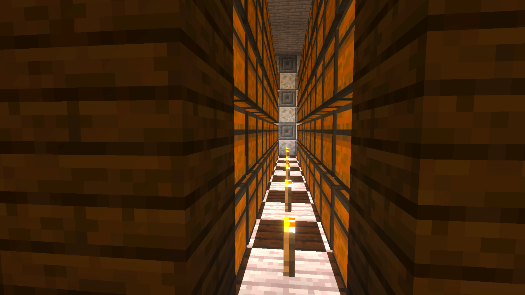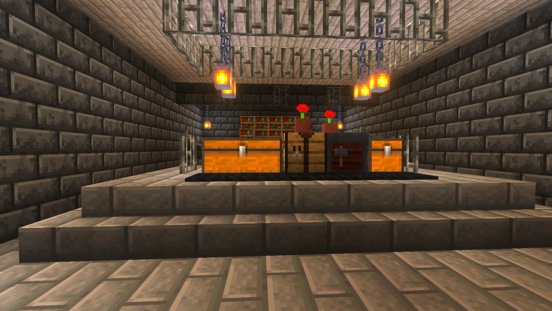 Meanwhile, I wanted to show you the storage area my wife and I built. She designed it and did most of the work. I am so proud of her for another wonderful build. I did help with the walls and some of the rows of chests. It’s built out of dark oak, pale oak, polished diorite, chiseled stone, and hundreds of chests. And the finishing touches of lanterns, which was started, but we still have a lot of them to put up. And as always, I hope you enjoyed today’s updates, and please check back soon for our future updates!