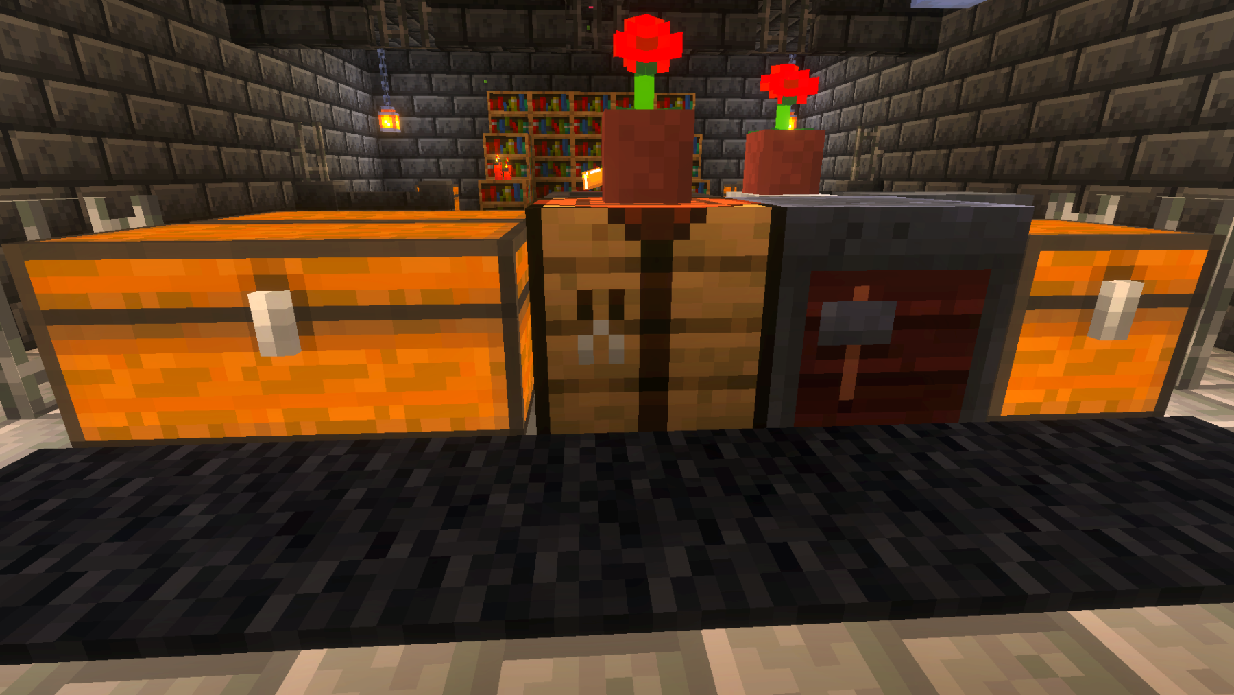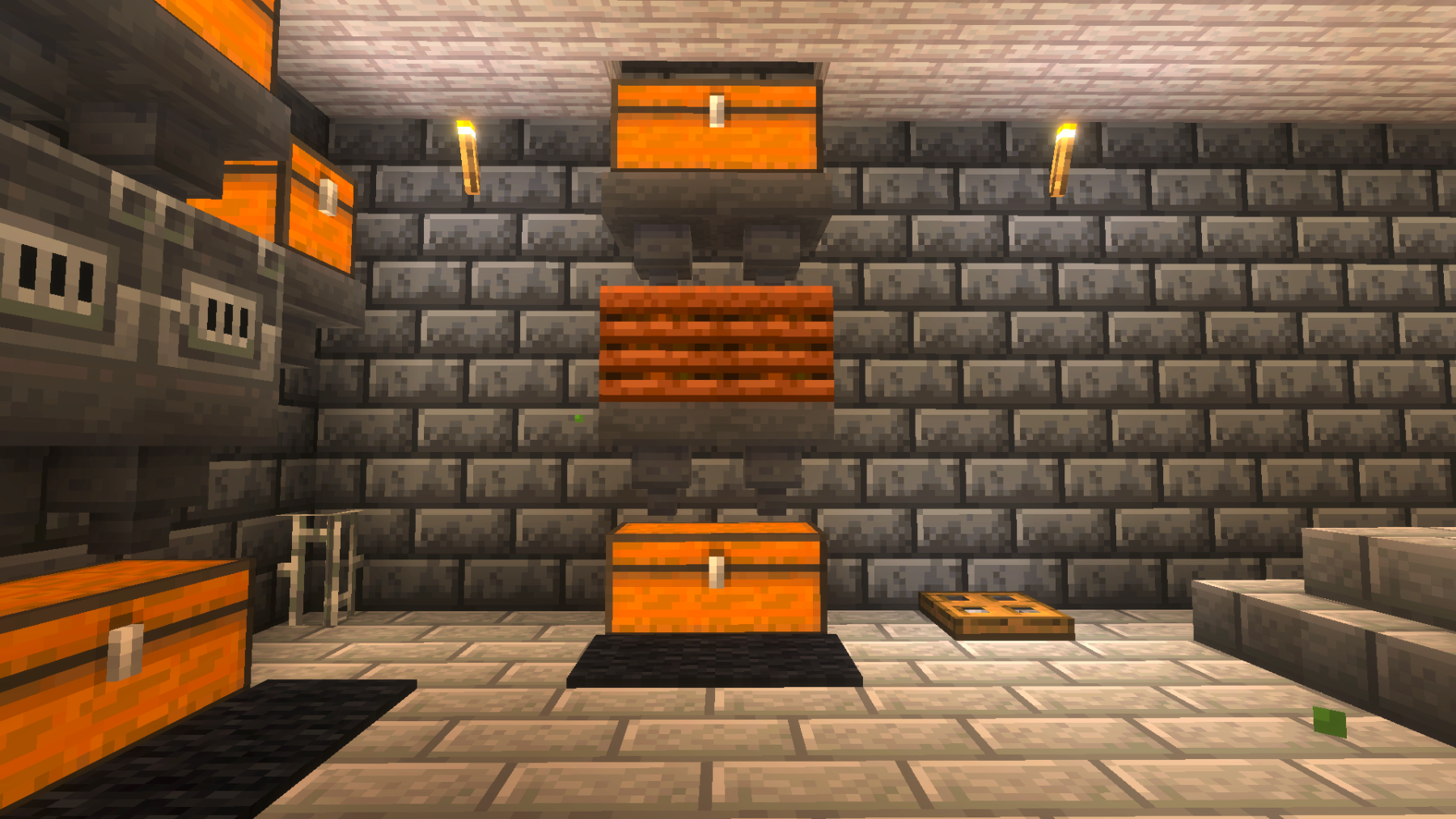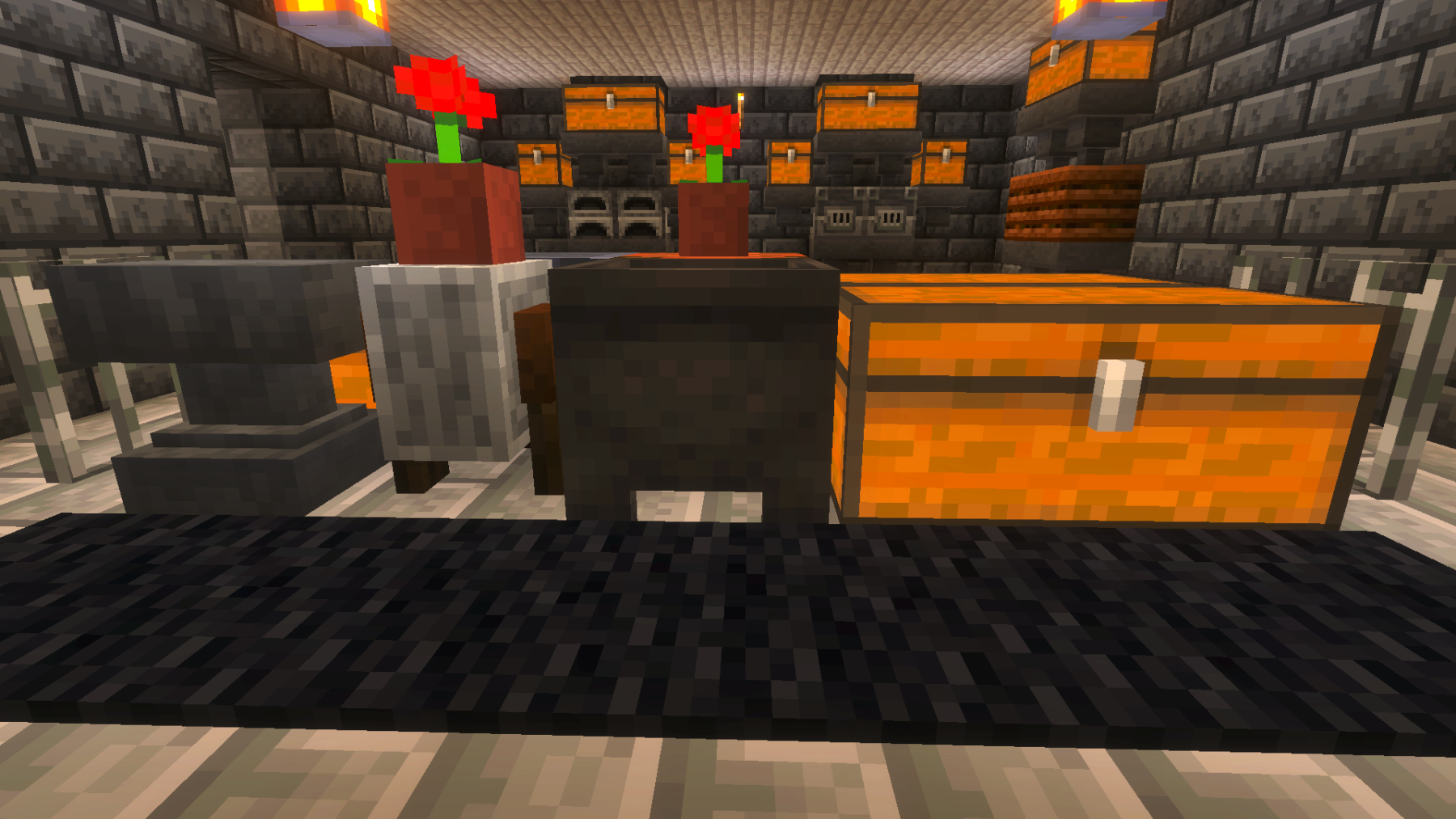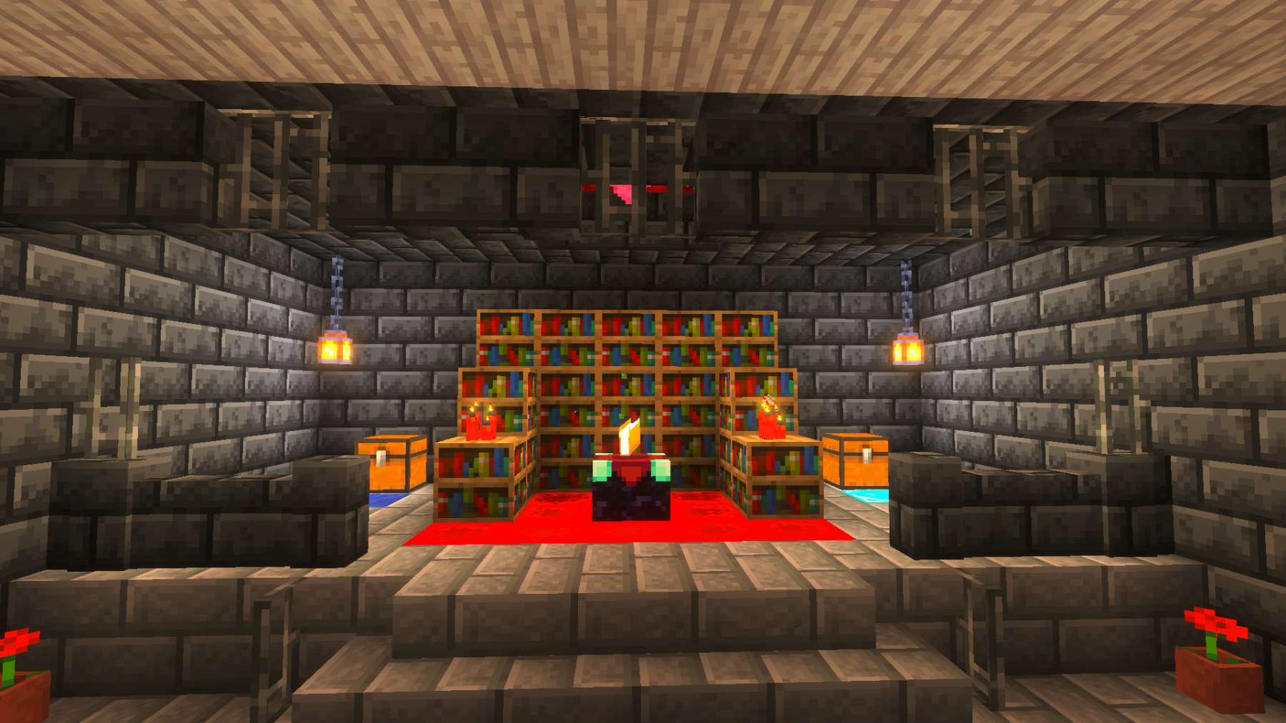 Meanwhile, I wanted to show you the storage area my wife and I built. She designed it and did most of the work. I am so proud of her for another wonderful build. I did help with the walls and some of the rows of chests. It’s built out of dark oak, pale oak, polished diorite, chiseled stone, and hundreds of chests. And the finishing touches of lanterns, which was started, but we still have a lot of them to put up. And as always, I hope you enjoyed today’s updates, and please check back soon for our future updates!