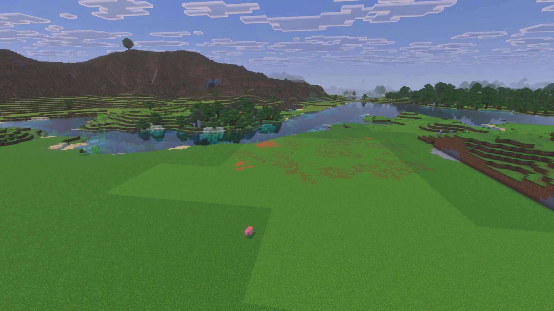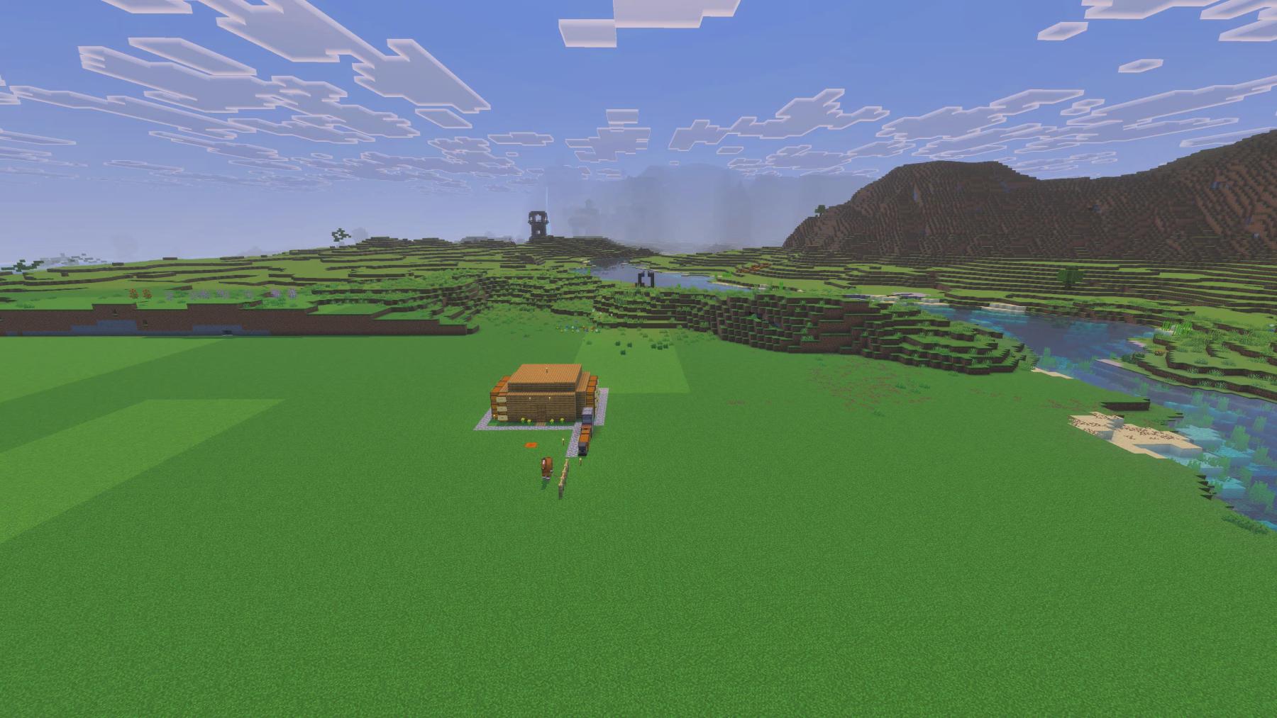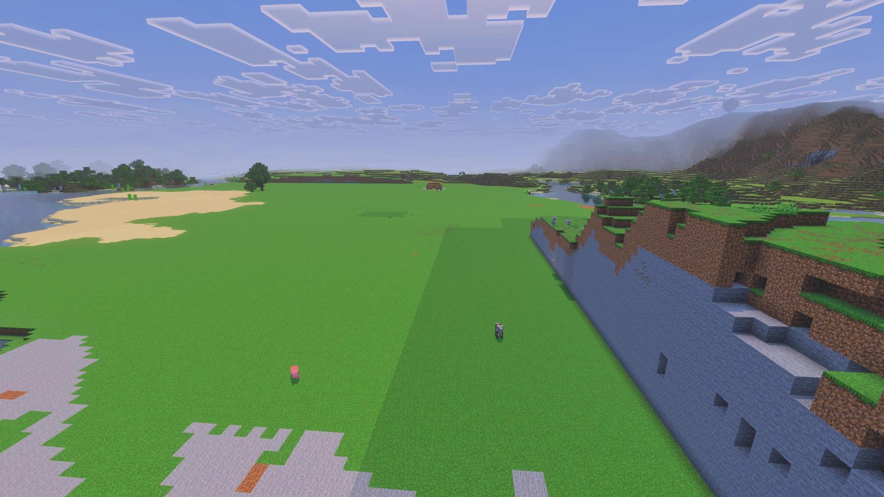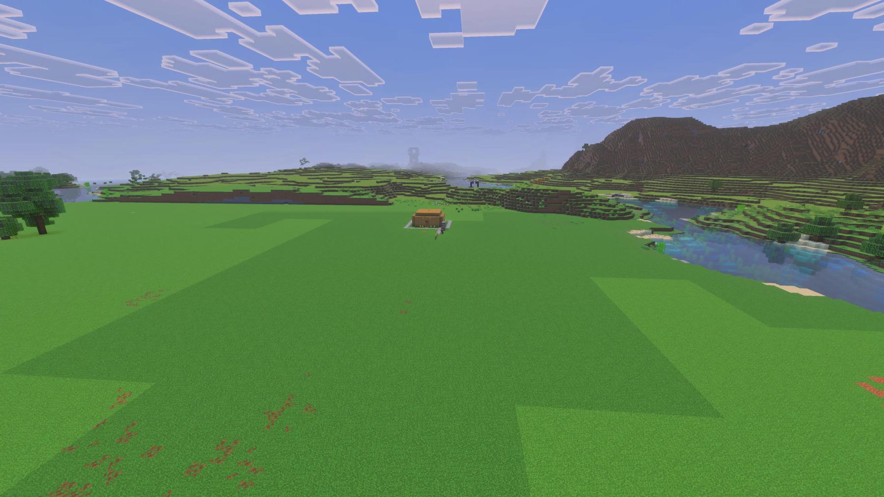 Just a quick update, today was a busy day for my wife, Happysoul, and me. So we didn’t get a lot done before this post. We only worked on the world for a couple of hours today. As you can see, Happysoul took down the rest of that half of the mountain, and I dug out most of the stone laid down grass.